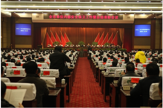 2012年12月21日上午9点30分,全市单位内部安全保卫工作暨总结表彰会议在长沙市政府会议中心举行。会议经过六项议程后圆满完成。会议中,我公司被评为“2012年度长沙市保安服务行业社会管理综合治理'十佳'先进单位”;我公司队员李秀华同志、彭驰同志荣获“个人嘉奖”。图为会议现场实况: